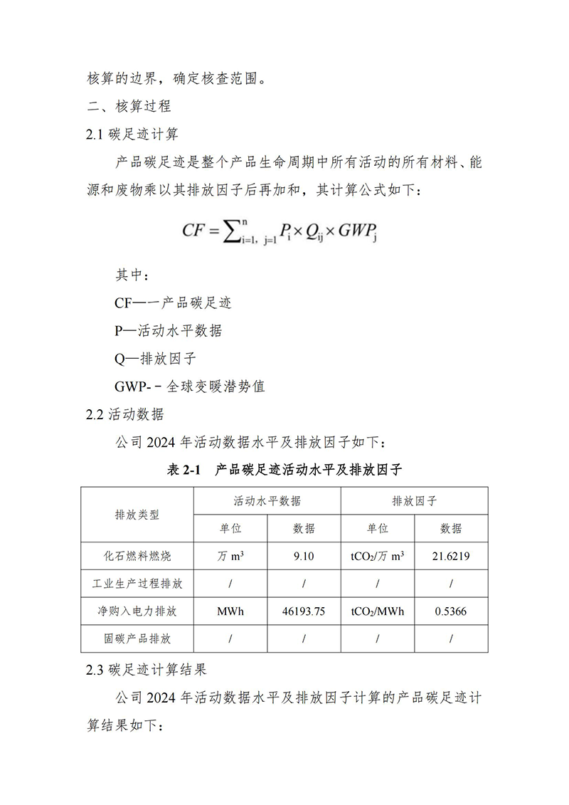 碳足跡核算報(bào)告—公示